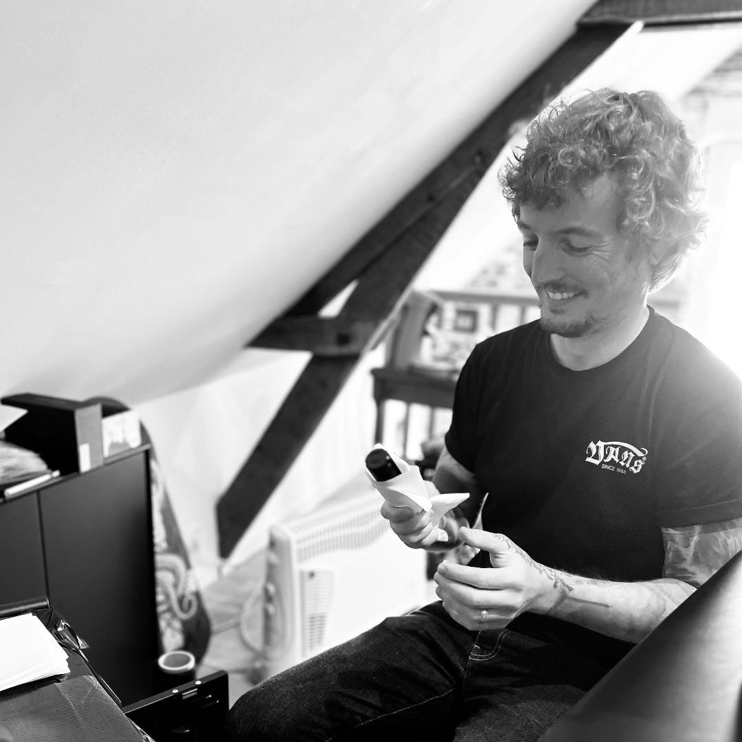 Artiste autodidacte, Romain pratique depuis plus de cinq ans un tatouage minimaliste, aux lignes fines et délicates. D’origine norvégienne, il s’est posé en Bretagne, séduit par la force de la nature et l’esprit de liberté. Ancien batteur de groupe métal "Colossus" passé par le Hellfest, skateur depuis l’adolescence, il puise dans ces univers son énergie créative.